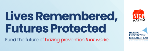 In 2025, our partner, the Hazing Prevention Research Lab at the University of Maine, unveiled the Lives Remembered, Futures Protected – Hazing Prevention Research Campaign. The goal is to raise funds to conduct the first national study on student hazing in almost twenty years and expand research to empower the whole hazing prevention community with research-backed prevention data and analysis.